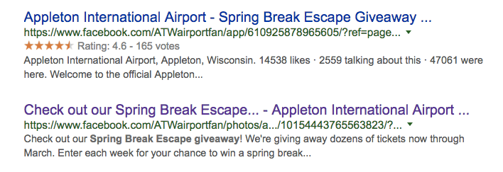 Always make your contest search-engine friendly, like this regional airport did for their vacation giveaway[/caption] In addition to the landing page, advertise your contest on your site using keywords that you want to rank for. Google sometimes weeds out newer pages, so describing the contest on your main website and linking to it may be your best bet for optimum visibility.
