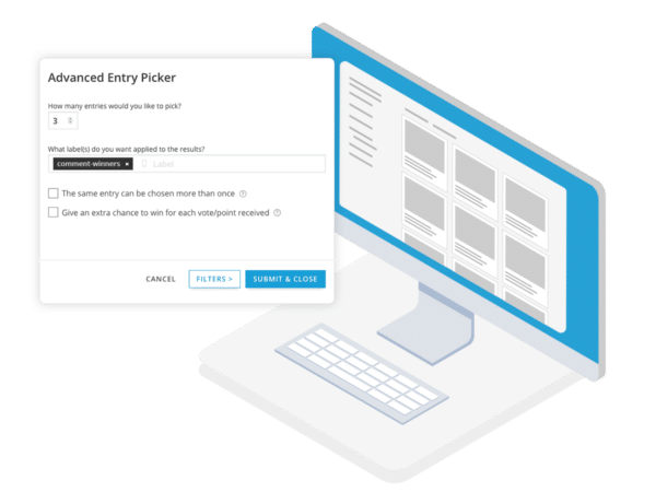 voting helps determine the top entries, and a random winner is chosen from there.Different types of winner selection methods work for different contests. For example, sweepstakes tend to award winners using random entry selection, whereas something like a photo or video contest tends to include voting.