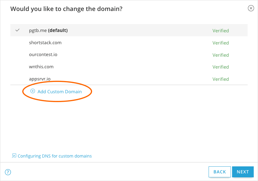 TIP: Not sure about a custom domain? Try embedding your campaign instead. We’ll provide you with the code you need to insert your campaign into your existing website.