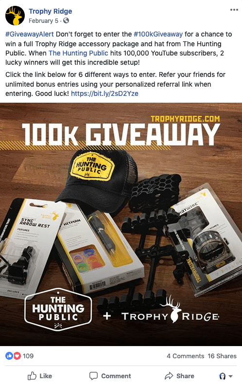 By offering a “bonus entry for each friend you tag,” more eyeballs will find their way to this giveaway, thusly increasing exposure and followers.