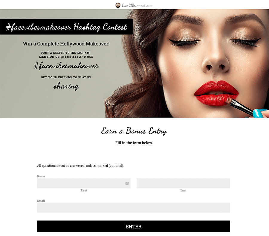 If your contest is major (this example is $100k major!) you’ll want to make it worth your while. To do that, make sure you’re collecting the info that will help you grow your business - i.e. a name and email address. Include a link in your giveaway announcement (or in your Instagram profile) and drive traffic to an online entry form.