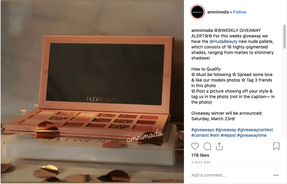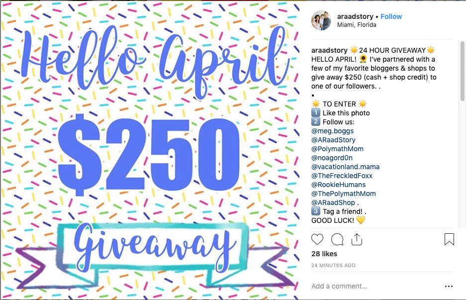Instead of “tag 2 friends” why not allow participants to tag as many friends as they’d like? By offering unlimited entries for each friend tagged, your reach will increase exponentially, getting you loads of engagement and new followers.