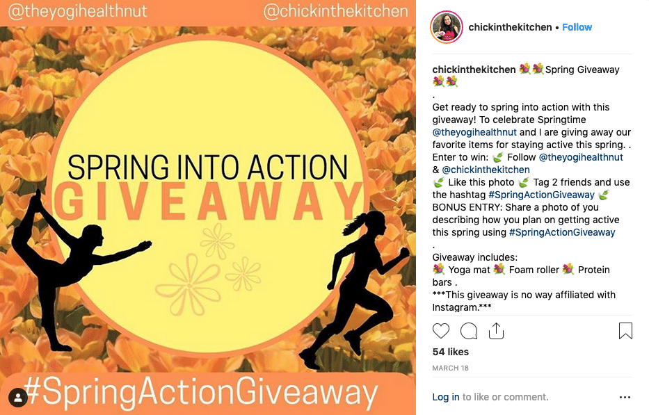 By asking participants to post a photo with your branded hashtag, you’ll not only be collecting user-generated content to use for further marketing, you’ll boost brand awareness and help increase your business’ discoverability. In this contest, participants are asked to post a photo with the hashtag #SpringActionGiveaway that will count as a bonus entry into this contest.