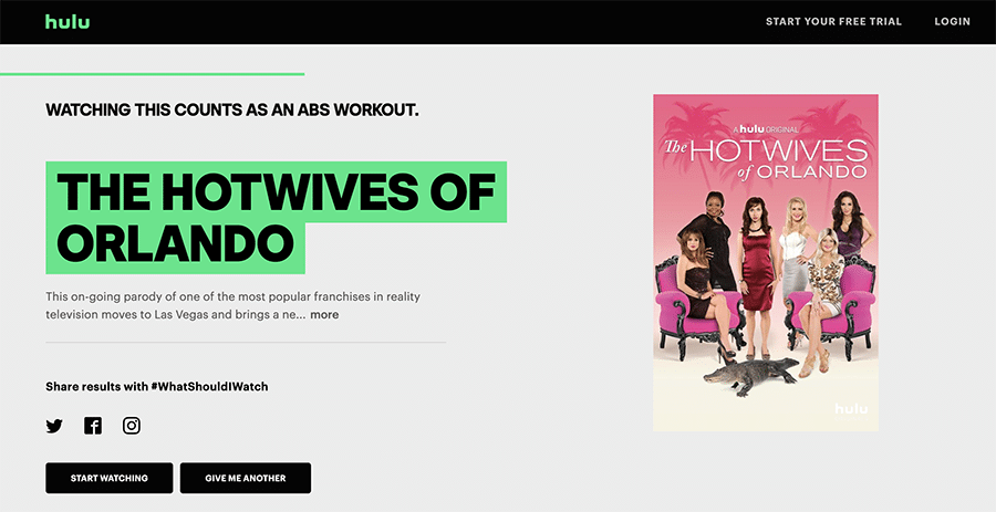 Although the name ‘Personality Quiz’ may not be familiar to you, you’ve certainly seen one of these in your Facebook feed and may have even taken one (or a dozen) on a lazy Sunday afternoon. A personality quiz is a type of quiz that gives you a specific outcome after you’ve answered questions about your personality. For example, to find out which character on Game of Thrones you’d most likely be, you may have to pick your favorite movie, your favorite character from the Simpsons, and even your favorite emoji. Based on your answers, the quiz will reveal your outcome. (I got Hodor.)A quiz like this may seem silly and pointless apart from offering up a bit of fun. However, it can actually be a powerful tool in your marketing toolbox. Take this example from Hulu - participants can take the quiz to find a movie or tv series to watch. I don’t know about you, but picking something to watch can be a real struggle in our household. Sometimes, offerings like this are not only helpful, they engage their participants and prolong their subscriptions by helping subscribers discover new shows. For instance, I would have never picked The Hotwives of Orlando to watch, but after seeing my quiz outcome, I might just give it a shot.