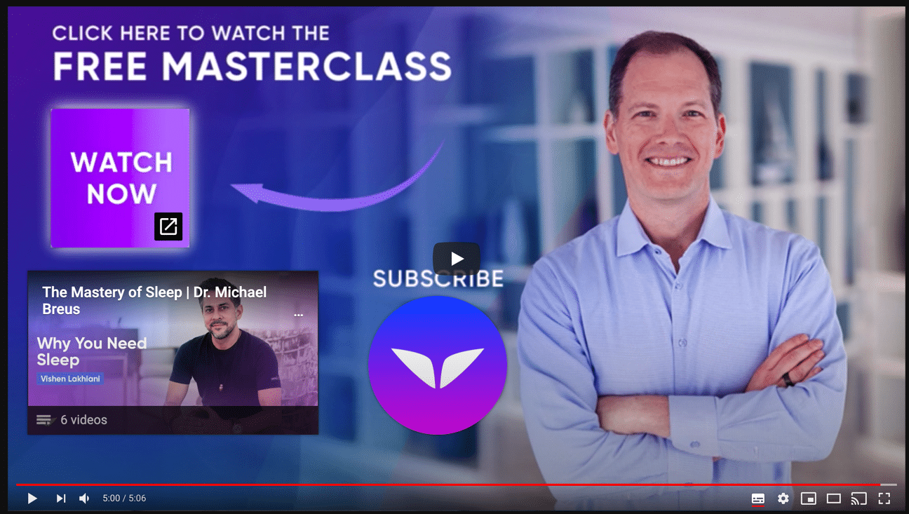Here they embedded a link to a landing page that promotes a free masterclass from Michael Breus in the YouTube video’s end screen.