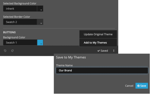 Making updates to themes is possible within our Style Panel. Apply font updates or use color swatches to quickly change the overall theme colors to meet your brand guidelines. Alternatively, you can make changes to specific elements of the campaign using specific widget style options.