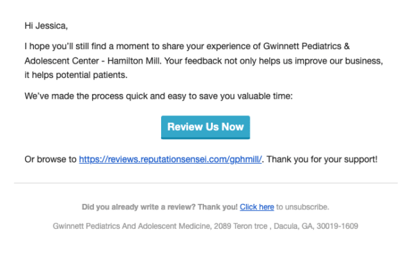 As I mentioned before, 70% of customers say they’d be happy to leave a review if simply asked to. But people get busy, life goes on, and leaving that review can sometimes (maybe even oftentimes) get lost in the shuffle of our daily grind. Amongst your well-intentioned customers, all is not lost. Simply send a reminder (or two) via email after the first request goes unfulfilled.