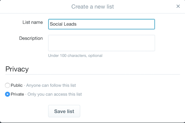 Custom audiences aren’t the only way to segment your users to your benefit on social media; you can also create use lead information to locate your leads on Twitter. From there, you can create Twitter lists made up of the users who entered your social contest.