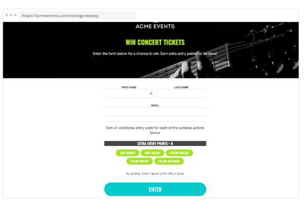Prioritize these actions to align with your top goals instead of listing every possible action under the sun. Sure, you could award extra points for visiting your website, following your Twitter profile, visiting your Facebook Page, visiting your YouTube channel and following your Instagram account. However, it doesn’t make a lot of sense to offer all those options if you are only active on YouTube, and your goal is to send people to your website to increase sales. If this were the case, simply offer two options in exchange for extra entries: visiting your website and visiting your YouTube channel.