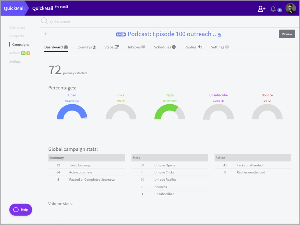 Tracking your email marketing metrics in QuickMail
