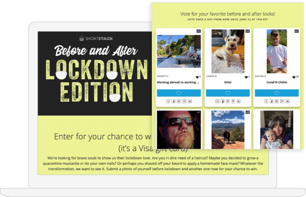 Before and after contests tap into the psychology of change and achievement. You ask participants to upload both a before and after photo and reward the most awe-inspiring transformation with a prize.For example, here at ShortStack, we ran a “Before & After Lockdown” contest.
