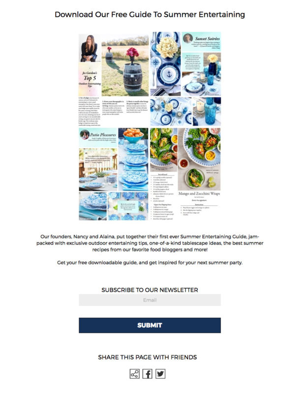Q Squared’s “Summer Entertaining Guide” Download/Newsletter Sign-Up Campaign