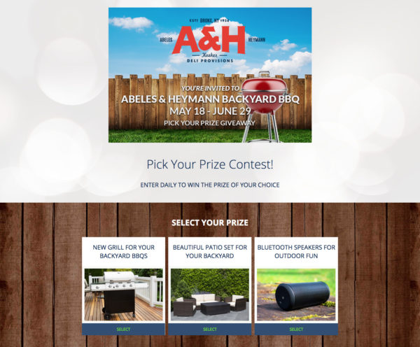 Who doesn’t love a good backyard BBQ? The folks at Abeles & Heymann (A&H), makers of kosher hot dogs and other deli provisions are giving away three amazing gifts to transform your backyard into the BEST grilling spot in town. Using our Pick Your Prize template, A&H is letting fans choose what they want to win: a new grill; a beautiful outdoor patio set, or Bluetooth speakers for outdoor entertaining. To increase their chances of winning, people are encouraged to enter once a day.