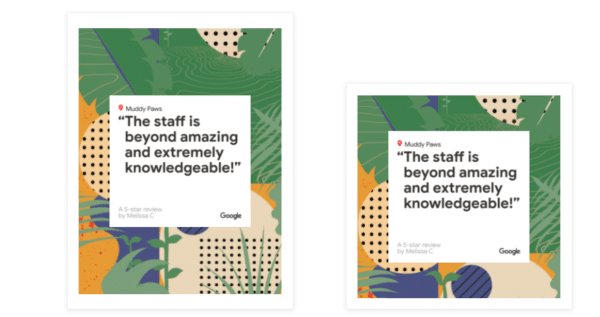 Image Source: Google My Business[/caption]Google is one step ahead here, with their custom review stickers that can be crafted for your Instagram, Twitter or Facebook feeds. These handy content fillers, make a great source of word-of-mouth marketing and continue to inspire conversation amongst both new and loyal customers.