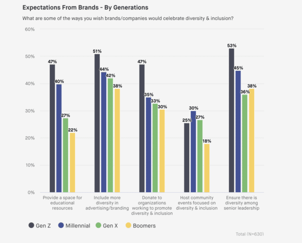 Image Source: CampaignLive[/caption]As you can see here, over 50% of Gen Z want to see more diversity within branded content. Speaking to their personalities directly and promoting the causes they believe in is vital here if you want to encourage them to share and talk about your content.