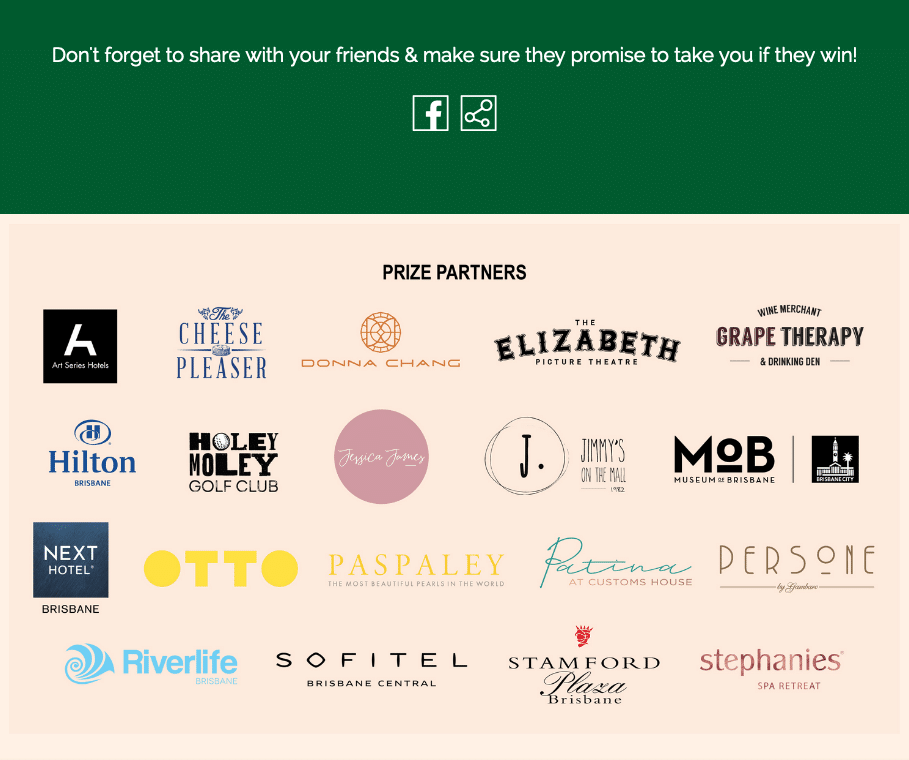 - logos for Brisbane City’s prize partners.