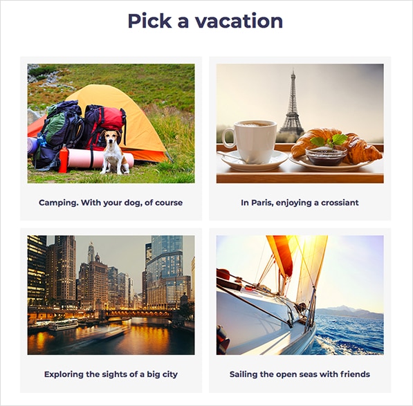 Global Homegoods’ “How should you decorate your college space?” quiz first asked users to, “Pick a vacation.” While this question might not seem like it had anything to do with decorating style, as the questions progressed you can see that Global Homegoods was smart by combining general lifestyle questions with questions related to home decor.
