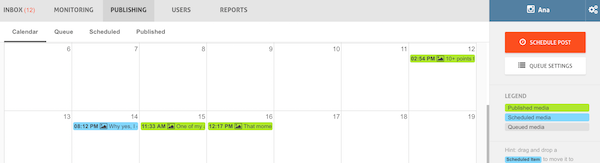 You can also use social scheduling and publishing tools like Buffer orAgorapulse (pictured below).