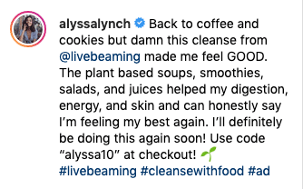 Once you find some Instagram profiles that are worth reaching out to, hold off on cold calling them with an offer. Perhaps start by sending some free products, or a discount code to break the ice. If an influencer is putting their name behind something, they’ll most likely want to be a little familiar with it first. Not to mention, free stuff is always a great way to make fast friends.Once you have a relationship established, there are a few ways influencers can help you promote your brand. Maybe you send them free stuff from time to time in exchange for a one-post shout out. Another popular approach is to create a discount code that is unique to the influencer that they can share with their audience.Referring to the sponsored post by Alyssa Lynch, you can see she mentions an offer code - use “alyssa10” at checkout.
