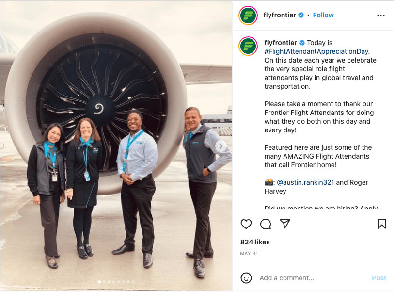 Her team has even found uses for ShortStack in ways they hadn’t initially planned. For example, they use ShortStack to engage with Frontier employees, something that they don’t normally have the ability to do. With ShortStack, airline employees like flight attendants, pilots, gate agents, and maintenance employees can submit original user-generated content, which McWorther’s team then repurposes for use on Frontier’s social media channels. This simple act of sharing has helped build a network of Frontier employees that love the brand.