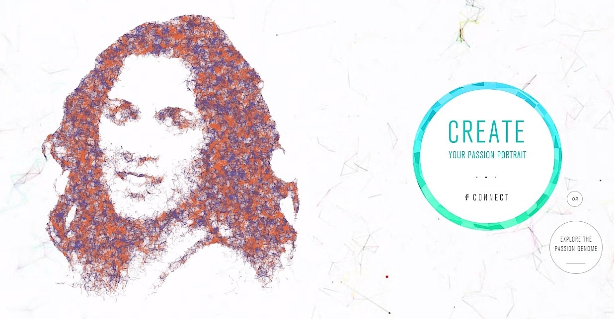 Nissan's ‘Your Door to More’ campaignA link to the PassionGenome.com allowed people to see how they connected with their friends and people globally based on their likes. Those who shared their Passion Portrait via Facebook were entered into a contest for one of eight $1,000 Amazon gift cards and had their portrait featured on the PassionGenome.com site.With over 76,000 site visits and almost 18,000 portraits, Nissan’s Passion Genome project helped people connect with each other and the brand.