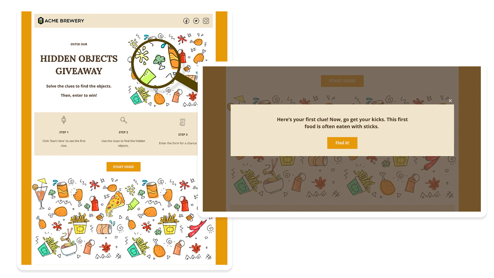 : Gamify your website by hiding objects or icons that users must find to win a prize or a promo code. Inthis example