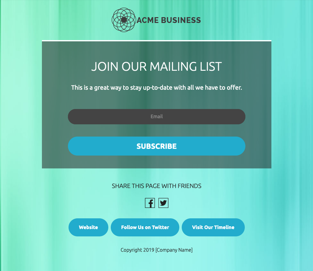 Newsletter Sign-up campaign built with ShortStackView and Create Your Own