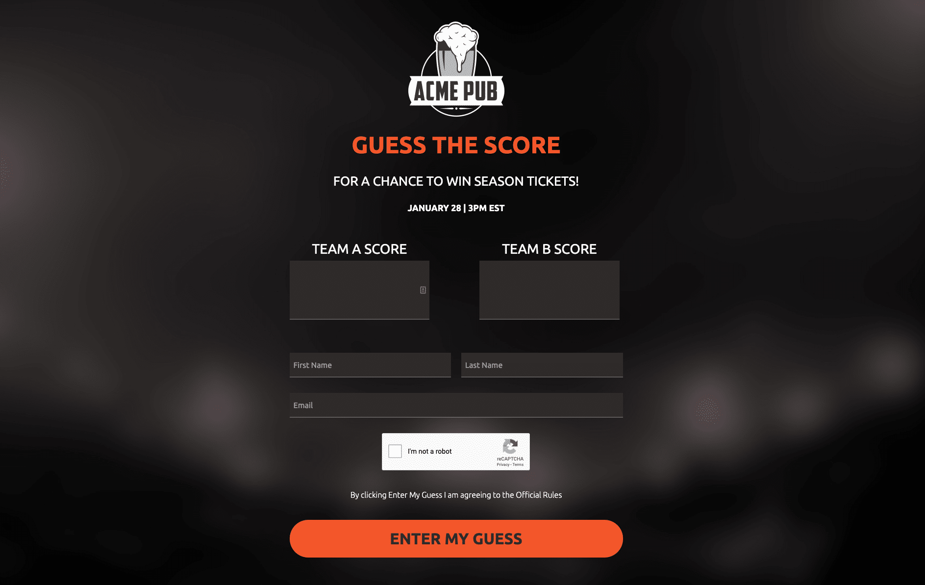 For sports fans, sparking a “who will win” discussion on social media will surely bring out your audience’s enthusiasm for their favorite team. Ask them to comment with their team pick on a post. Then, if they’d like to guess the game’s score, they can navigate to this campaign and submit it for a chance to win.