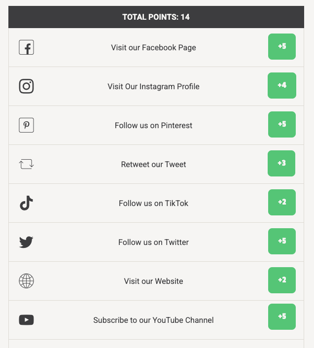 Example of offering points for actions using ShortStack’s Points for Actions template