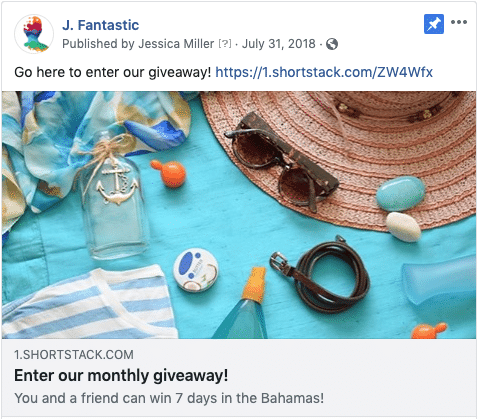 First and foremost, they offer a free shot at winning a cool prize. Even those “I never win anything” people can get excited at the possibility that your contest will potentially make them a big winner.The prize you’re giving away should be something closely related to your business. For example, if you’re a massage therapy practice, don’t give away a cash prize or an iPad, give away free massages! Not everyone enjoys stripping to their skivvies to get rubbed down by a stranger, so make sure you’re only targeting those who love a good massage and could potentially become future clients - not those who will claim your prize and never look back.You can even sweeten the pot by offering extra chances to win to those who get referral entries to your contest (this means they’ll be sharing your contest and you’ll get more participants). Another option is to include an Instant Win component so prizes will be distributed at random leading up to the big prize giveaway. Or, you can send a discount code or coupon to all those who participate, giving everyone an incentive to enter. With all of the excitement, your FB fans and Instagram followers could be navigating to enter your contest or giveaway in droves.On Facebook, link directly to your giveaway from within a post, so when clicked, your fans will be directed to your giveaway.