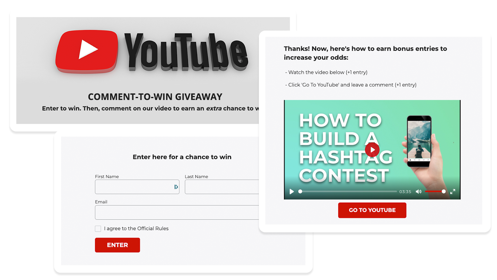 ShortStack offers this YouTube Comment to Win Giveaway template with the user flow already set up. Here’s how it works: