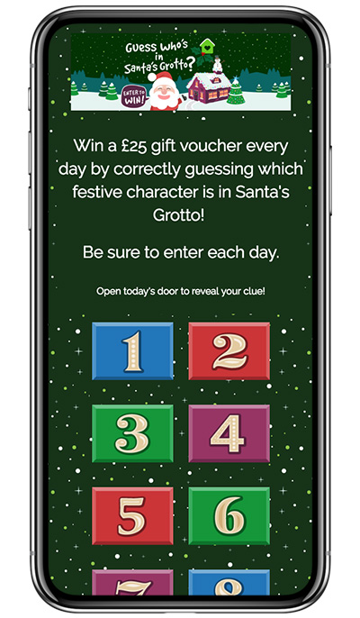 Allanwater Homes sure got creative when setting up their multi-day giveaway calendar. Each day, folks are asked to guess who is in Santa’s grotto. Entry popups include images of a home that Allanwater Homes is building, selling or showcasing, along with entertaining questions like, “Who does Santa know who has a red nose?” (answer: Rudolph). People who answer the daily question correctly are included in the daily drawing for a £25 voucher. This campaign is a fun way to promote Allanwater Homes’ properties to potential buyers.