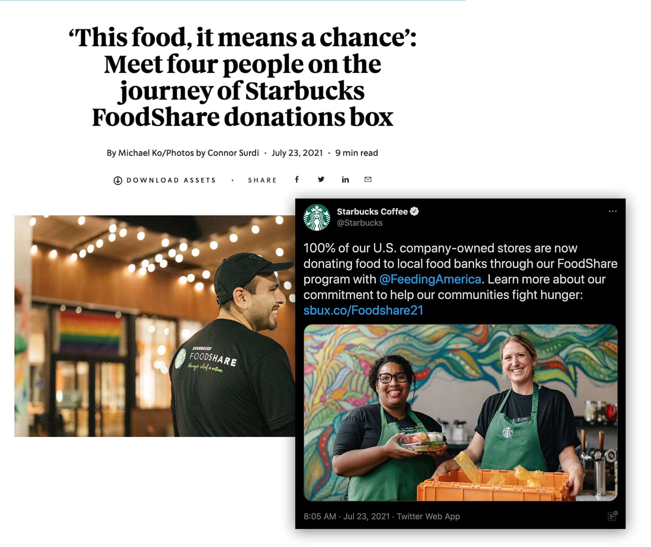 Starbucks might be known for their coffee, but they also sell a LOT of food. To make sure food doesn’t go to waste, Starbucks implemented their FoodShare program in partnership with FeedingAmerica. While the program was introduced in 2016, they recently pledged to reinvest $100 million over the next decade to help combat food insecurity in the United States.