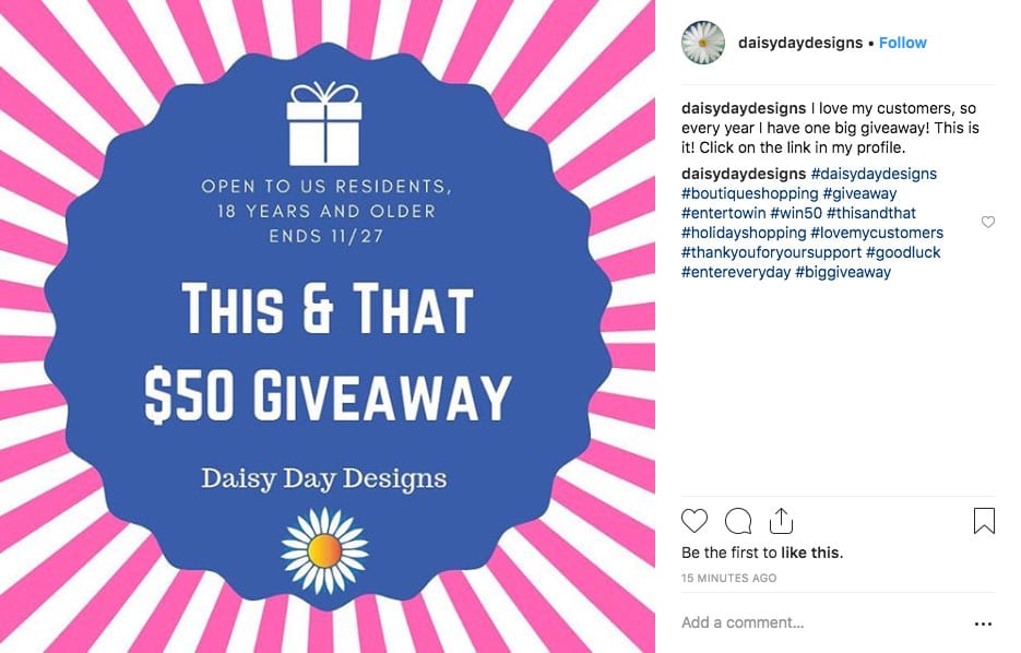 The growth of Instagram usage has left other popular social media networks in its dust - Twitter and SnapChat usage both pale in comparison to Instagram’s one billion users. A quick scroll through an Instagram feed will reveal the secret of its success - it’s like flipping through a glossy magazine. But instead of pages adorned with made-up glamzillas, its content is curated from your very own friends and family. What a treat!The structure and simplicity of Instagram has made the app great for users, but for businesses, the options for promotions are much more limited. In the profile of your Instagram account, there’s one small, barely noticeable place to add a link to your website or online store. You can run ads on Instagram, but they’re camouflaged as regular posts. So what do you do to get noticed?One smart tactic many businesses use to capture the attention of their followers is to offer a contest or giveaway. Normally, this is in the form of a post with instructions to “tag 2 friends to enter” or something along those lines. There’re a couple problems with this sort of giveaway: