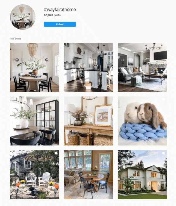 If you’re anything like me, buying furniture online feels a little risky. When you can’t sit on it, touch it, or even see it in person, it’s really tough to know if the few hundred (or even few thousand) dollars you’re paying for furniture is going to be money well spent.Wayfair’s clever way of boosting purchasing confidence is their #WayfairAtHome Instagram campaign. Customers are encouraged to post pictures of their purchases, unveiling the glossy “staged” look as they appear online, and reveal how a product authentically looks and fits in their home.
