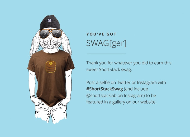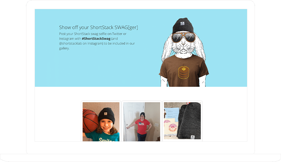 - Beanies were mailed with a postcard asking them to post a beanie-wearing selfie with #ShortStackSwag. The entries collected are displayed within a gallery that can be used for future swag giveaways.